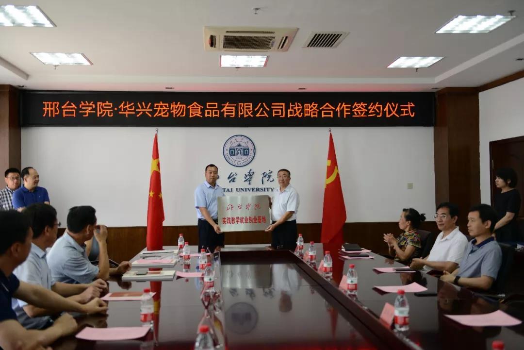 上午11時(shí)30分整,華興寵物食品有限公司總經(jīng)理冀葉軍與邢臺(tái)學(xué)院校長蔡振禹在戰(zhàn)略合作書上簽字,隨后由蔡校長代表邢臺(tái)學(xué)院進(jìn)行授牌儀式,授予華興寵物食品有限公司“實(shí)踐教學(xué)就業(yè)創(chuàng)業(yè)基地”,標(biāo)志著華興寵物食品有限公司和邢臺(tái)學(xué)院的戰(zhàn)略合作全面開始。